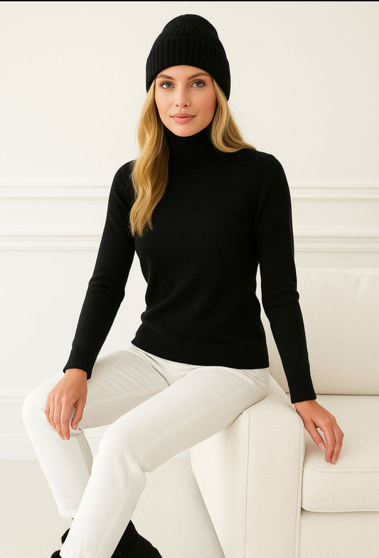 Cashmere Company Maglia Donna dolcevita Nero Cashmere e Lana