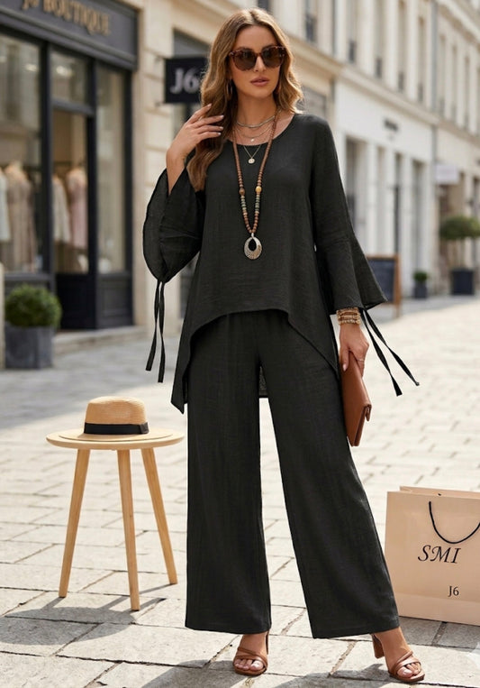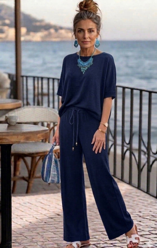 Tuta donna completo estivo maglia e pantalone a palazzo lino e viscosa elegante e leggera