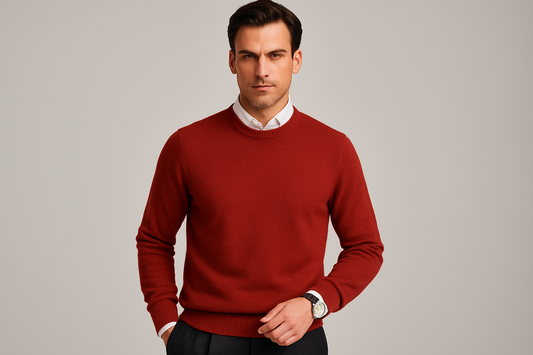 Maglia Uomo Cashmere Lana Mattone Girocollo Lanè Made in Italy