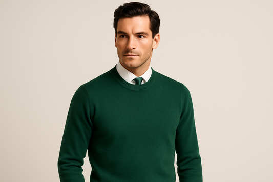 Maglia Uomo Cashmere Lana Verde Bottiglia Girocollo Lanè Made in Italy