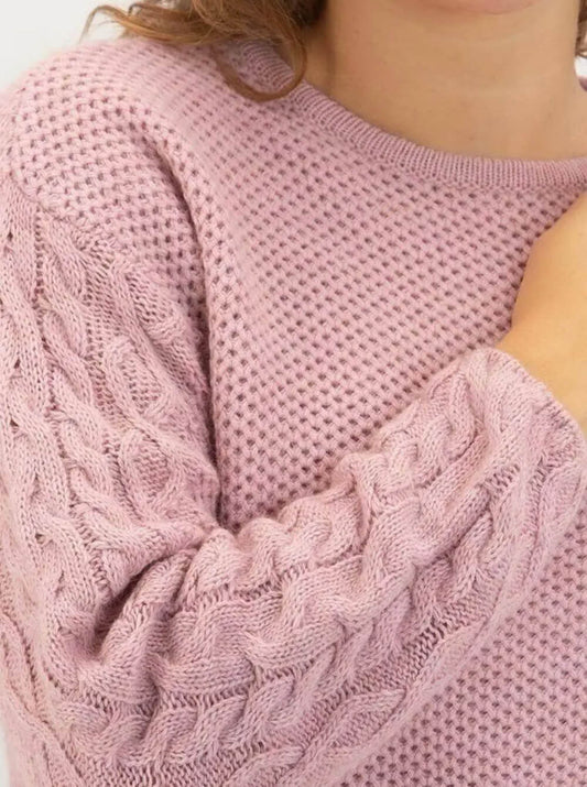 Cashmere Company Maglia Donna Rosa Girocollo Lana Alpaca Punto Canestro |Made in Italy
