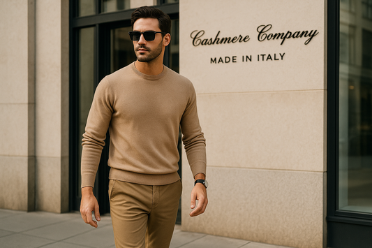Maglia Uomo Cashmere Company Beige Sabbia Girocollo - Cashmere e Lana Made in Italy