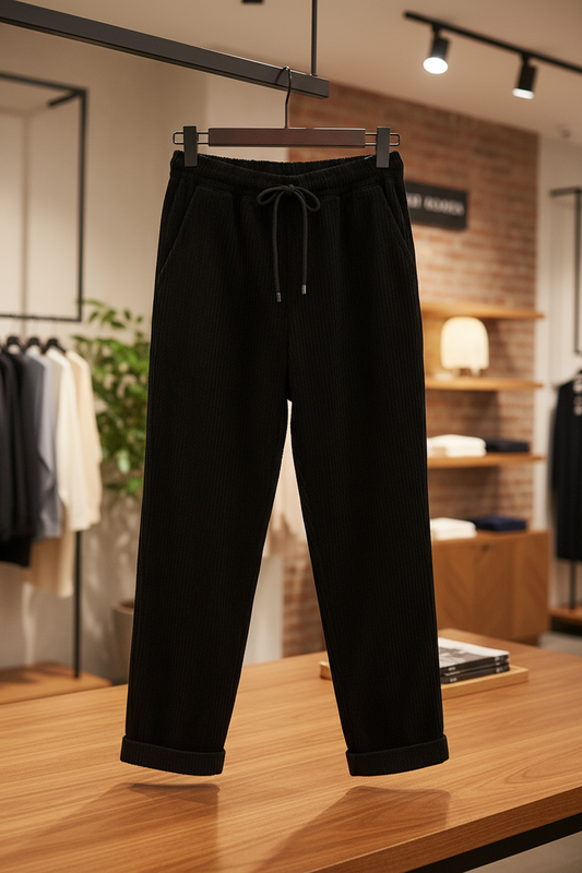 Pantalone Donna Velluto Nero a Coste - Elegante con Laccetto e Tasche