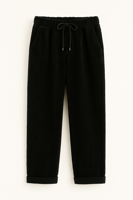 Pantalone Donna Velluto Nero a Coste - Elegante con Laccetto e Tasche