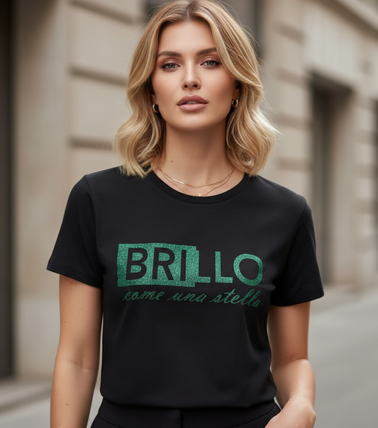 T-shirt Donna Cotone BRILLO come una stella | Bianca Nera Glitter Verde | Idea Regalo
