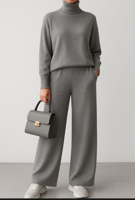 Tuta Donna Lana Rasata Completo Collo Alto Pantalone Palazzo Elegante Made in Italy