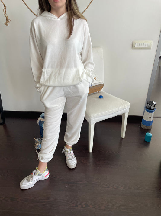 Tuta Donna colore bianco in cotone felpa con tasche e pantalone sc-50%