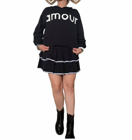 Completo Donna , tuta ragazza SC-50%" Amour" felpa con cappuccio manica lunga e gonna colore Nero