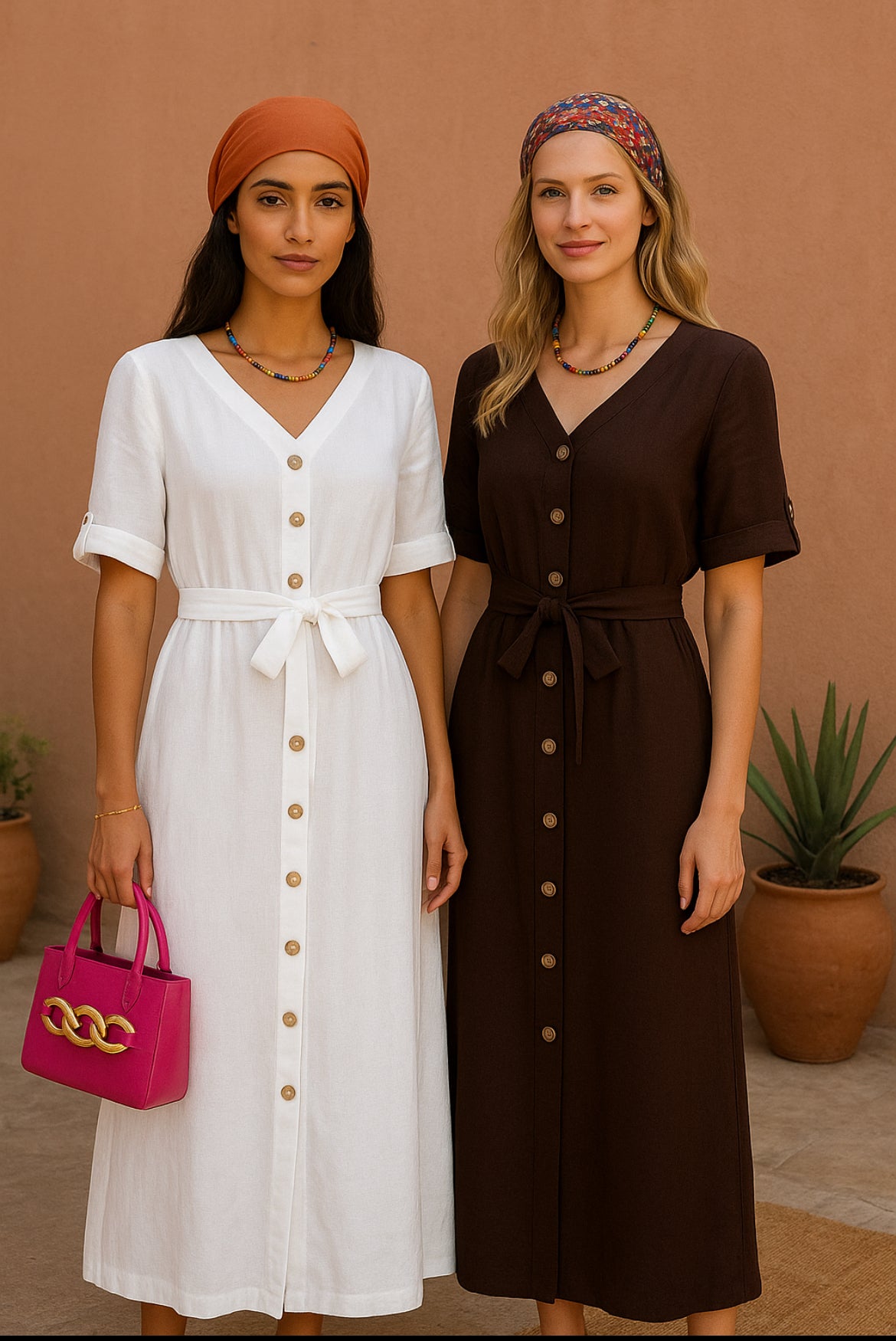 Esalta la tua personalità con questo vestito lungo fatto al 100% di lino di alta qualità di Cashmere Company. Disponibile nei colori bianco e marrone, è un abito elegante, delicato e resistente che puoi indossare con orgoglio. Progettato e prodotto in Italia, offre uno sconto del 50%. Goditi questa comodità e stile senza compromessi.