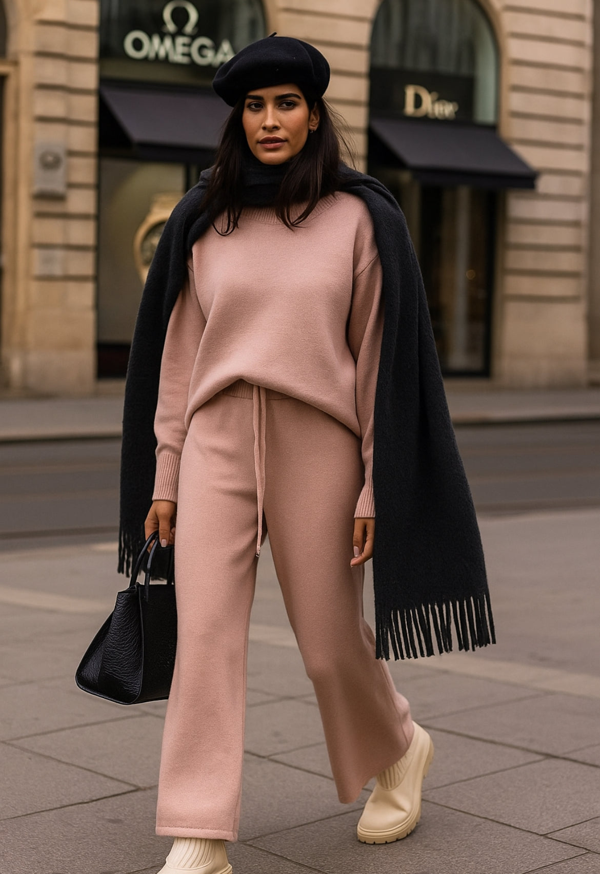 Scopri il perfetto equilibrio tra eleganza e comfort con questa raffinata tuta donna in lana rasata, il completo ideale per la donna moderna che non rinuncia mai allo stile.